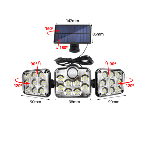 - Superhelle & 360° drehbare Strahler: Diese Solar-Wandleuchte für den Außenbereich hat 3 Köpfe mit 122/138 LEDS, die um 360° gedreht werden können, um eine gute Lichtabdeckung zu bieten, und Sie können die Köpfe leicht in die gewünschte Richtung richten.
