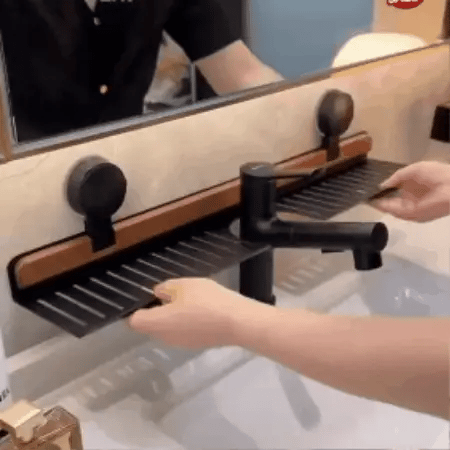 Die breite, U-förmige Nut passt zu den meisten Wasserhähnen, während der hohle Abfluss verhindert, dass sich Wasser staut. So bleiben Seife, Zahnbürsten, Rasierer, Flaschen und Küchenutensilien trocken und ordentlich verstaut.