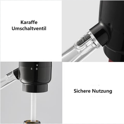 Encendido/apagado con un solo botón, vertido de vino fácil y preciso desde la salida de agua sin depósitos. La boquilla en forma de cono garantiza que el vino no se derrame sobre el mantel. La ventaja del decantador eléctrico es que puede resolver el problema del derrame de vino tinto en el vertido manual tradicional.