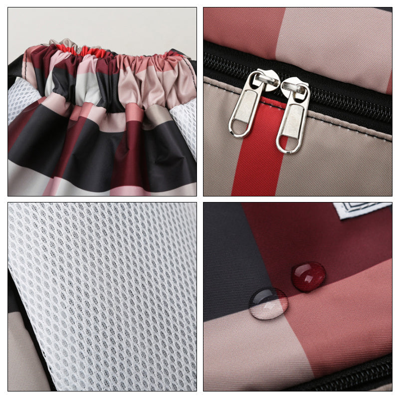 • Conception des compartiments : ce sac à dos avec cordon de serrage dispose de plusieurs poches, la poche principale est parfaite pour ranger des objets volumineux. Le compartiment zippé est légèrement doublé pour ranger votre portefeuille, votre téléphone, vos clés et autres petits objets de valeur. Conception de séparation sèche et humide, plus pratique et pratique.