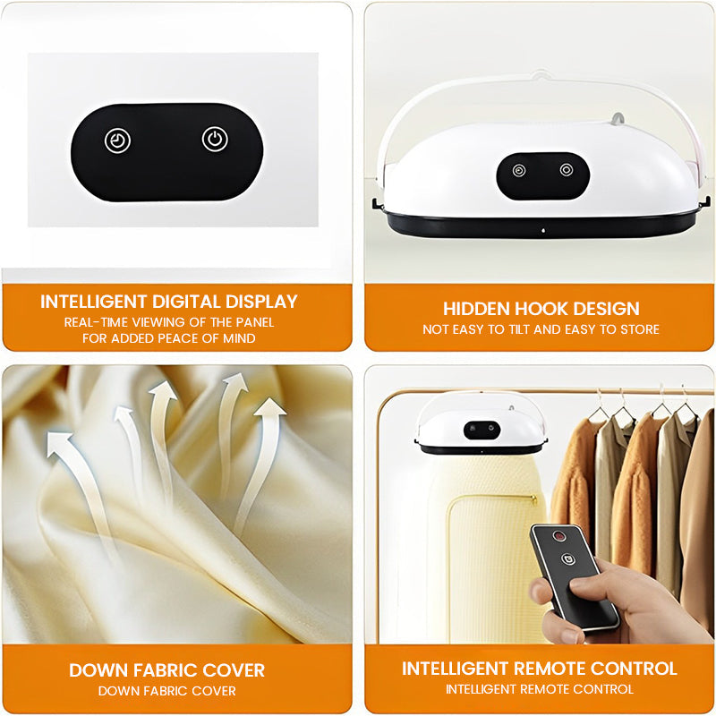 【 MINUTERIE INTELLIGENTE, SÉCHEUSE PLIABLE 】 Minuterie intelligente de 1 à 8 heures, deux modes de séchage pour différents tissus. Avec la fonction d'entretien quotidien et la fonction de séchage après le lavage d'un ou de plusieurs vêtements, il répond aux besoins de séchage et d'entretien des vêtements de voyage et de maison, améliorant ainsi la qualité de vie des familles en voyage et à la maison.