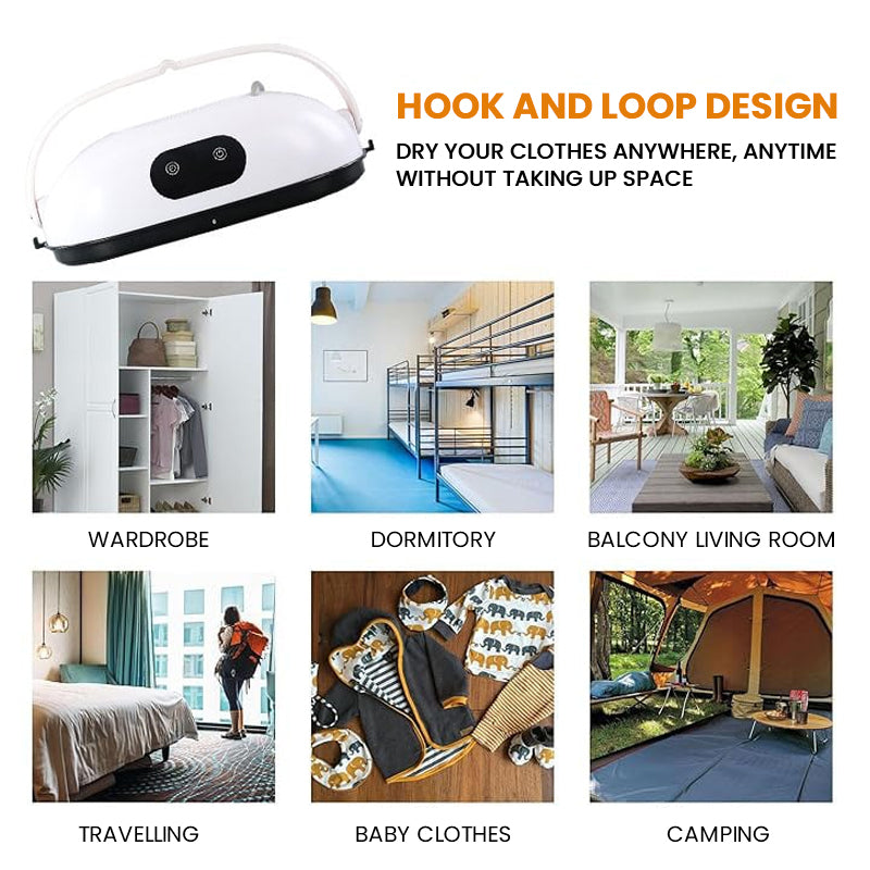 【 SÉCHEUSE PORTABLE 】 Taille petite et compacte, très pratique à transporter, peut sécher plusieurs vêtements en même temps après l'allumage, pratique, rapide et efficace, équipé d'un couvercle amovible, facile à nettoyer. Capacité de charge ultra-forte d'environ 10 kg, peut contenir 9 vêtements en même temps, résolvant facilement le problème du séchage rapide du linge dans la famille.