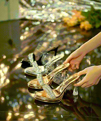 Chaussons transparents à talons hauts avec strass