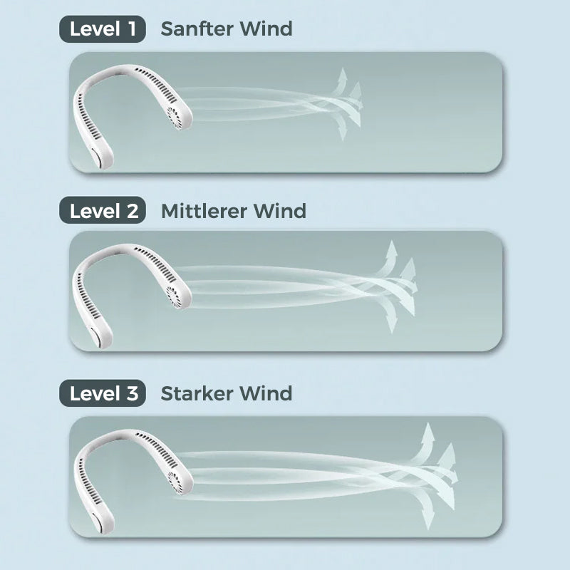 - Il s'agit d'un ventilateur léger et portable qui se porte autour de votre cou, vous offrant un refroidissement mains libres toute la journée.