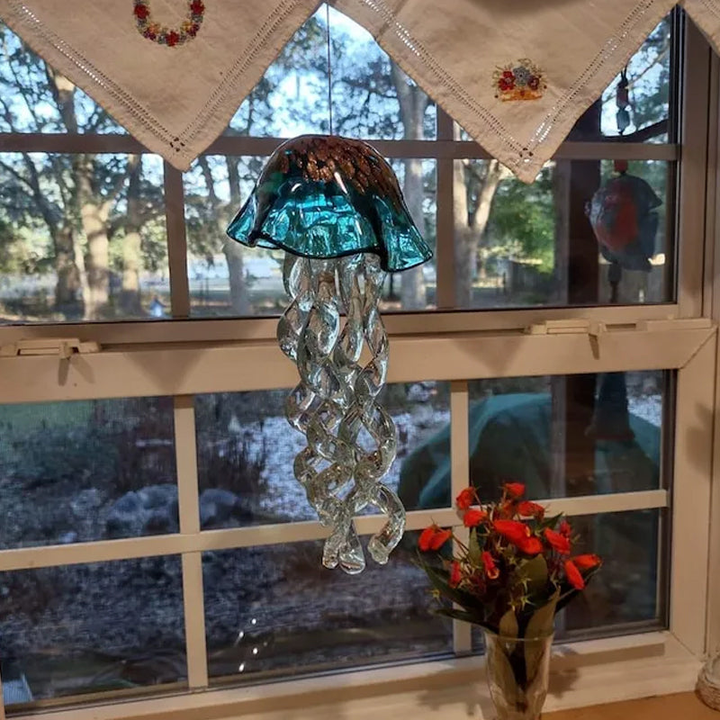 ✨Les carillons éoliens de méduses d'art faits à la main ajoutent une belle touche à votre pièce. Le magnifique bol en verre fabriqué à la main est d'une couleur turquoise profonde avec une touche de poussière d'or scintillante sur le dessus, vraiment remarquable car il capte la lumière.