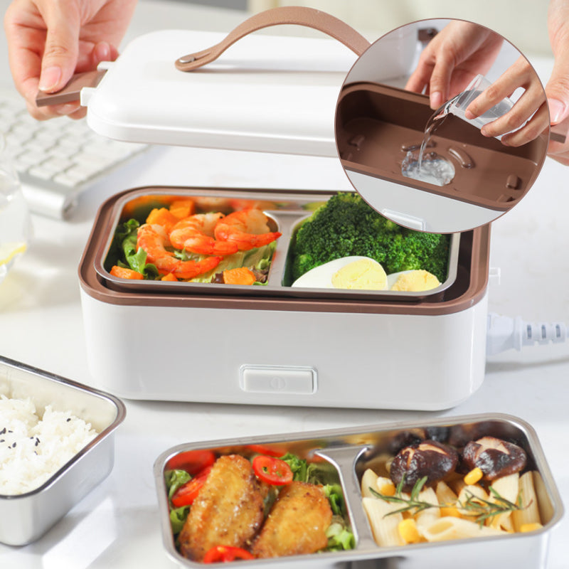 Conception portable : les deux bols en acier inoxydable et l'assiette peuvent être facilement retirés après utilisation et nettoyés sans effort. Les couvercles de bol inclus empêchent les fuites et gardent vos aliments propres et en sécurité pendant le transport. Veuillez retirer les couvercles lors de la cuisson ou du chauffage.