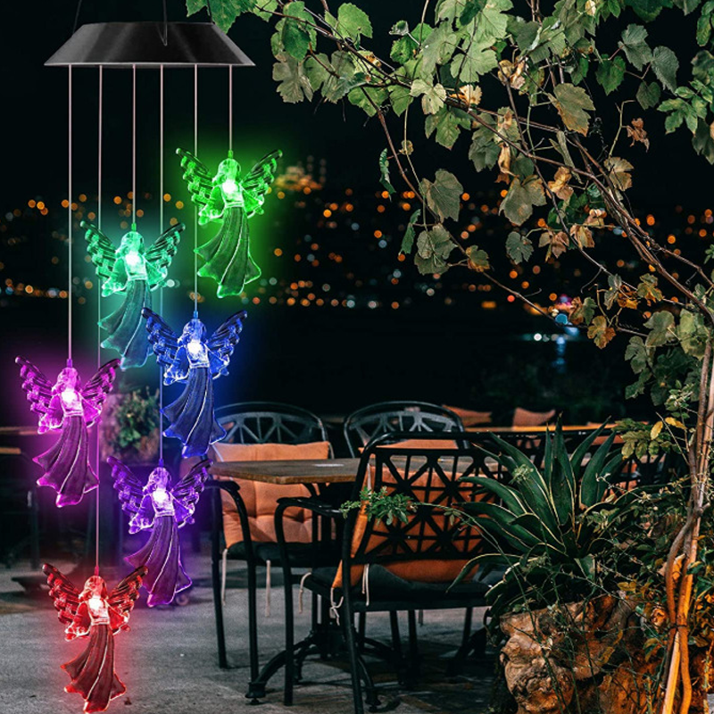 Carillon éolien à énergie solaire : se charge pendant la journée et s'allume automatiquement la nuit.