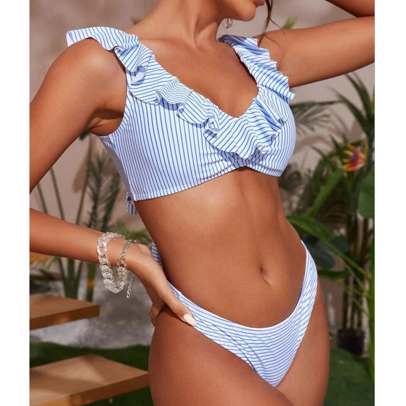 L'adorable haut à nœud papillon et le bas flatteur créent un style ludique et féminin, tandis que le motif rayé ajoute une touche classique.