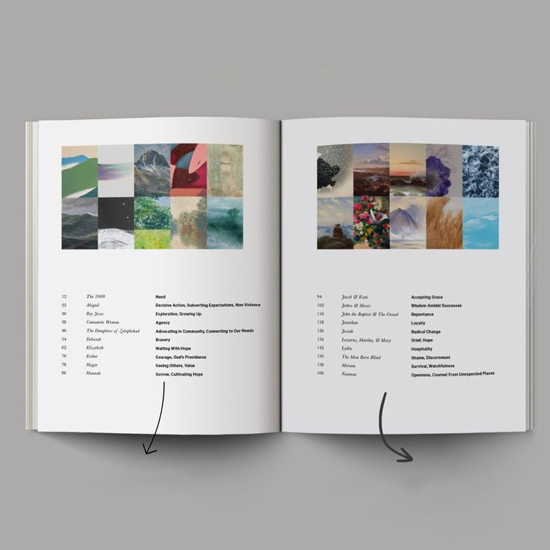 Illustration contemplative : chaque chapitre de l'étude biblique contient des illustrations contemplatives et des invites inspirées des thèmes de l'histoire pour vous aider à découvrir et à lire la Bible.
