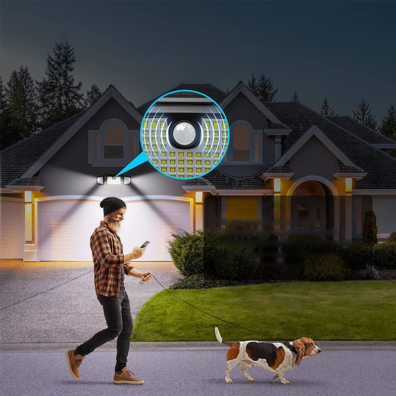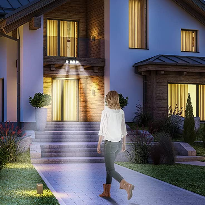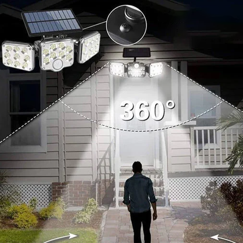 - Projecteurs super lumineux et rotatifs à 360° : cette applique murale solaire d'extérieur dispose de 3 têtes avec 122/138 LED, qui peuvent être tournées à 360° pour fournir une bonne couverture lumineuse, et vous pouvez facilement diriger les têtes dans la direction souhaitée.