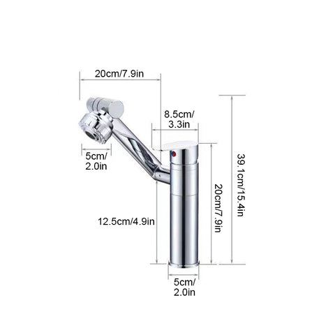 Respectueux de l'environnement : le robinet universel pivotant à 360 degrés permet d'économiser de l'eau et est respectueux de l'environnement. Par rapport aux raccords standards, l'utilisation de raccords pivotants peut économiser 30 à 70 % de la consommation d'eau et réduire les coûts énergétiques.