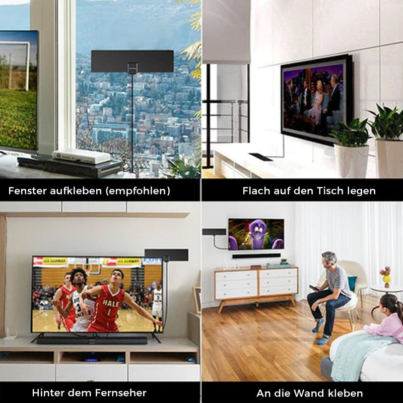 Accrochez l'antenne intérieure à une fenêtre ou un mur ou dans un meilleur endroit avec une meilleure réception dans votre maison.