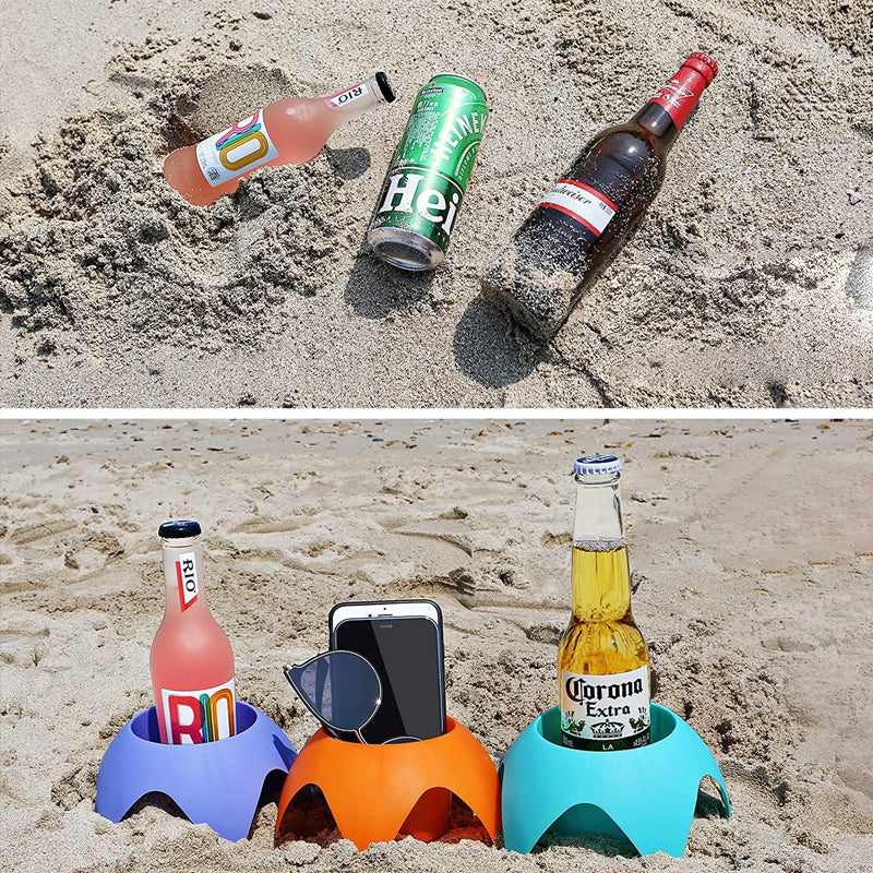 - Hält die meisten Getränkebehälter wie Wasserflaschen, Cocktailbecher, Dosen, Bierflaschen oder Trinkbecher problemlos aus dem Sand. Auch perfekt, um Snacks, Telefone, Sonnencreme, Schlüssel, Sonnenbrillen oder alles andere griffbereit und griffbereit aufzubewahren.