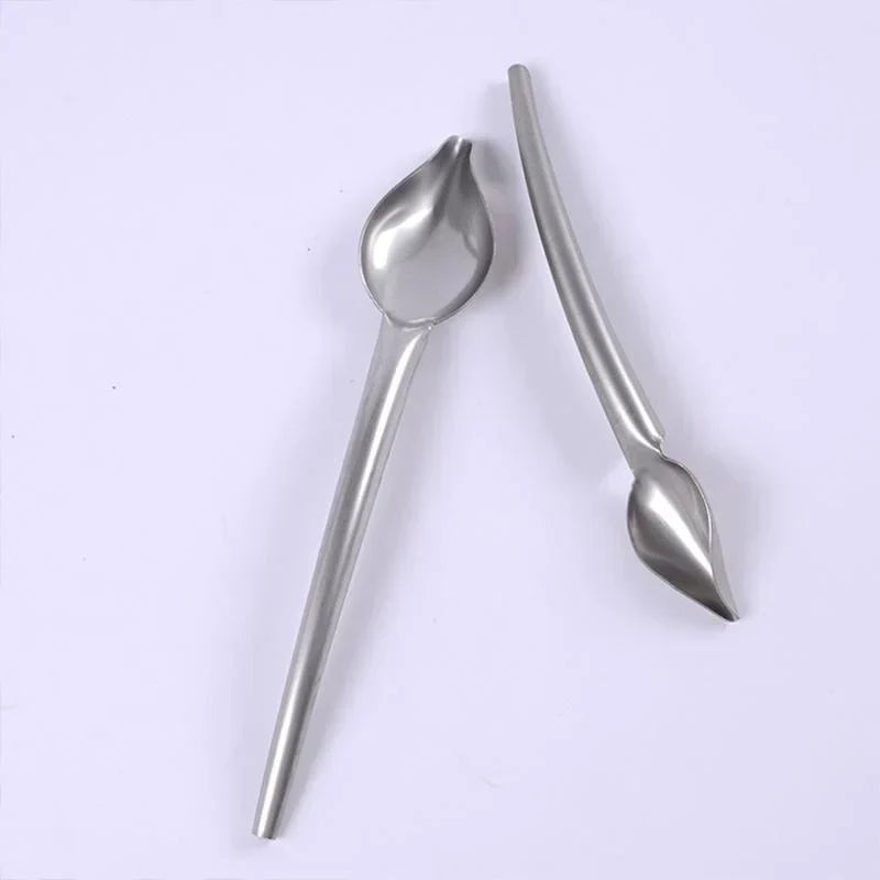 Entdecken Sie unseren Edelstahl-Dekorationlöffel! Verleihen Sie Ihren kulinarischen Kreationen Präzision und Raffinesse. Dieses stilvolle Werkzeug ist vielseitig einsetzbar und langlebig, perfekt für das Hinzufügen von detailreichen Designs zu Desserts, Saucen oder Sushi. Beeindrucken Sie Ihre Gäste und entfesseln Sie Ihre kulinarische Kreativität mit dem ArtisSpoon.