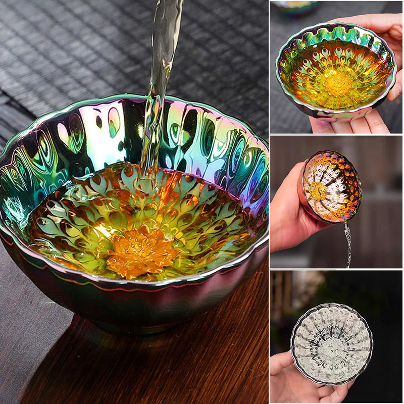 - Pfauen- und Lotus-Teetasse: Silberner Pfau und Lotus sind ordentlich in den Boden dieser Teetassen eingelegt, sie sehen wunderschön, lebensecht und edel aus. Wenn Tee in die Tasse gegossen wird, werden die Ornamente lebensechter und lebensechter.