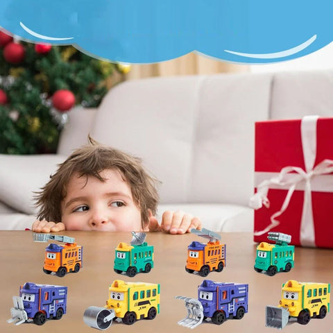 [Super lustige Spielzeugautos] Dieses Spielzeugauto-Set enthält 4 umwandelbare Konstruktionsautos, von denen jedes in ein neues Aussehen umgewandelt werden kann und auch das Interesse der Kinder am Spielen perfekt wecken kann. Gabelstapler, Leiterwagen, Rettungswagen, Bulldozer, Rollwagen, Schaufelwagen, Raketenfahrzeug und Radarfahrzeug.