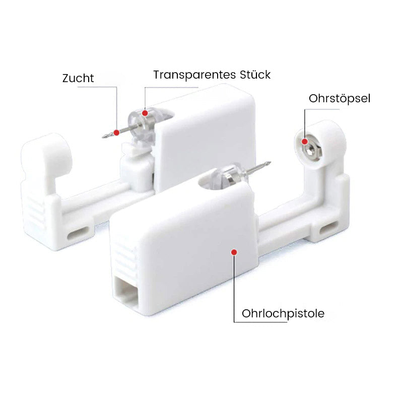 Sowohl die Ohrlochstechpistole als auch die Ohrstecker bestehen aus hochwertigen Materialien und sind hypoallergen, um den Vorgang sicher und einfach zu machen. Jede Piercing-Einheit wird einzeln verpackt und gereinigt.