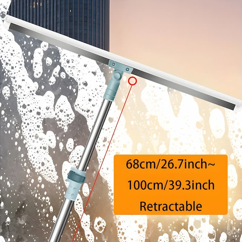 Mit einem verstellbaren Edelstahlstiel, einem 35 cm, 50 cm oder 60 cm langen Silikonwischkopf und einem flexiblen Mikrofaserwischpad passt er sich an jede Oberfläche und Situation an.