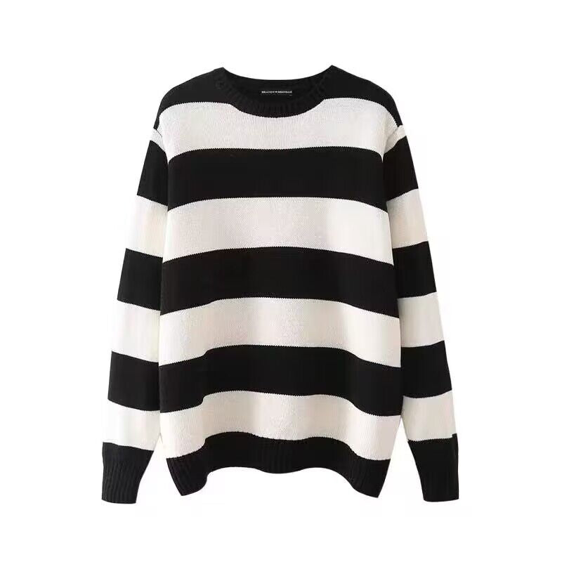 Gemütlicher gestreifter Rundhalsausschnitt Strickpullover