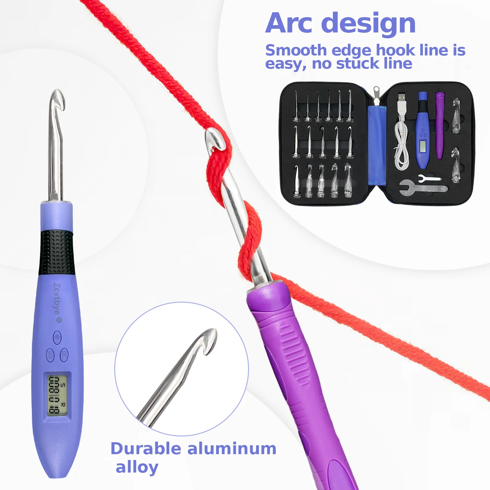 Außerdem erleichtert die wiederaufladbare, LED-beleuchtete Häkelnadel das Arbeiten bei schlechten Lichtverhältnissen oder mit dunklem Garn.