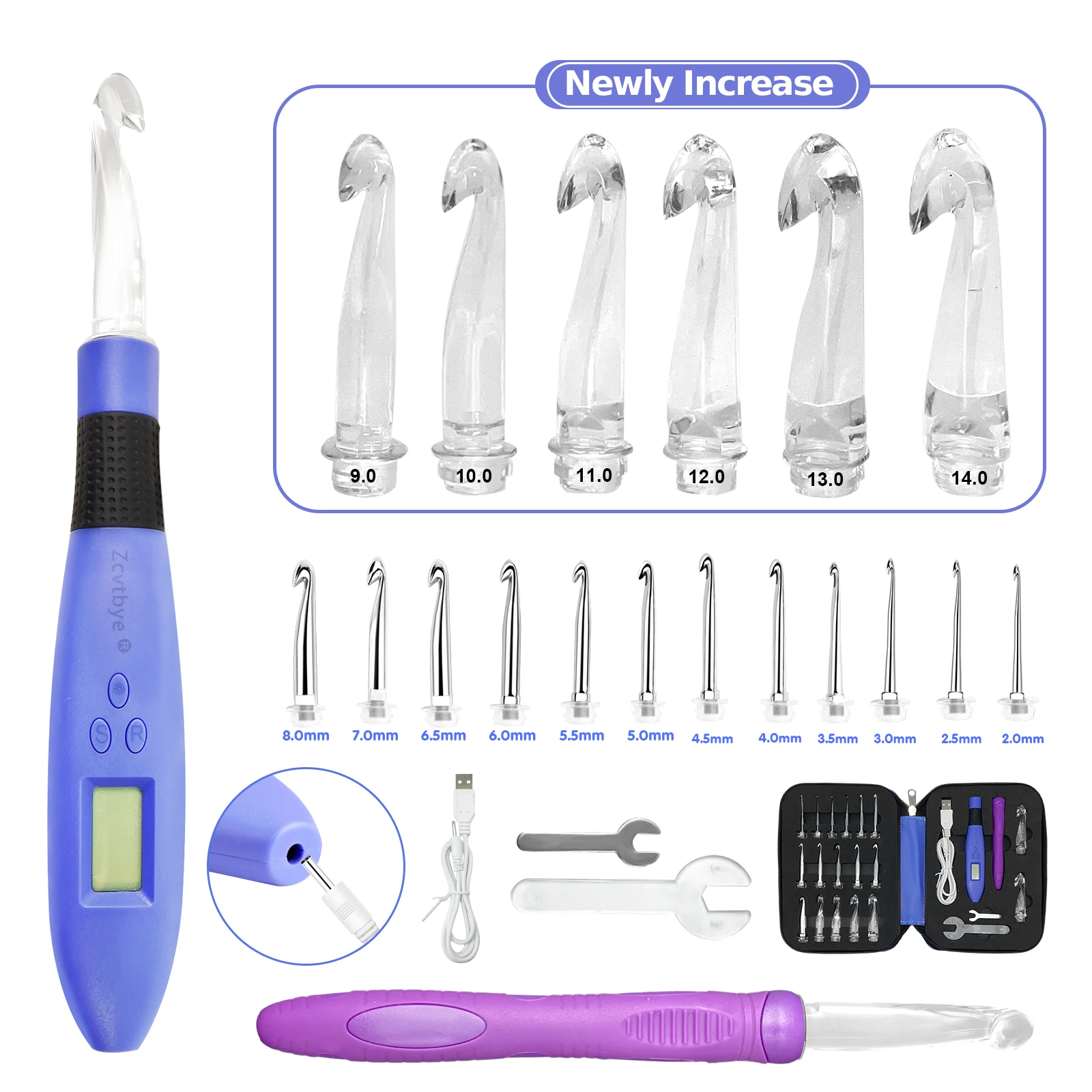 Mit 18 austauschbaren Häkelnadeln von 2,0 mm bis 14,0 mm sind Sie für jede Projektgröße und jeden Garn-Typ gerüstet, ohne mehrere separate Werkzeuge zu benötigen.