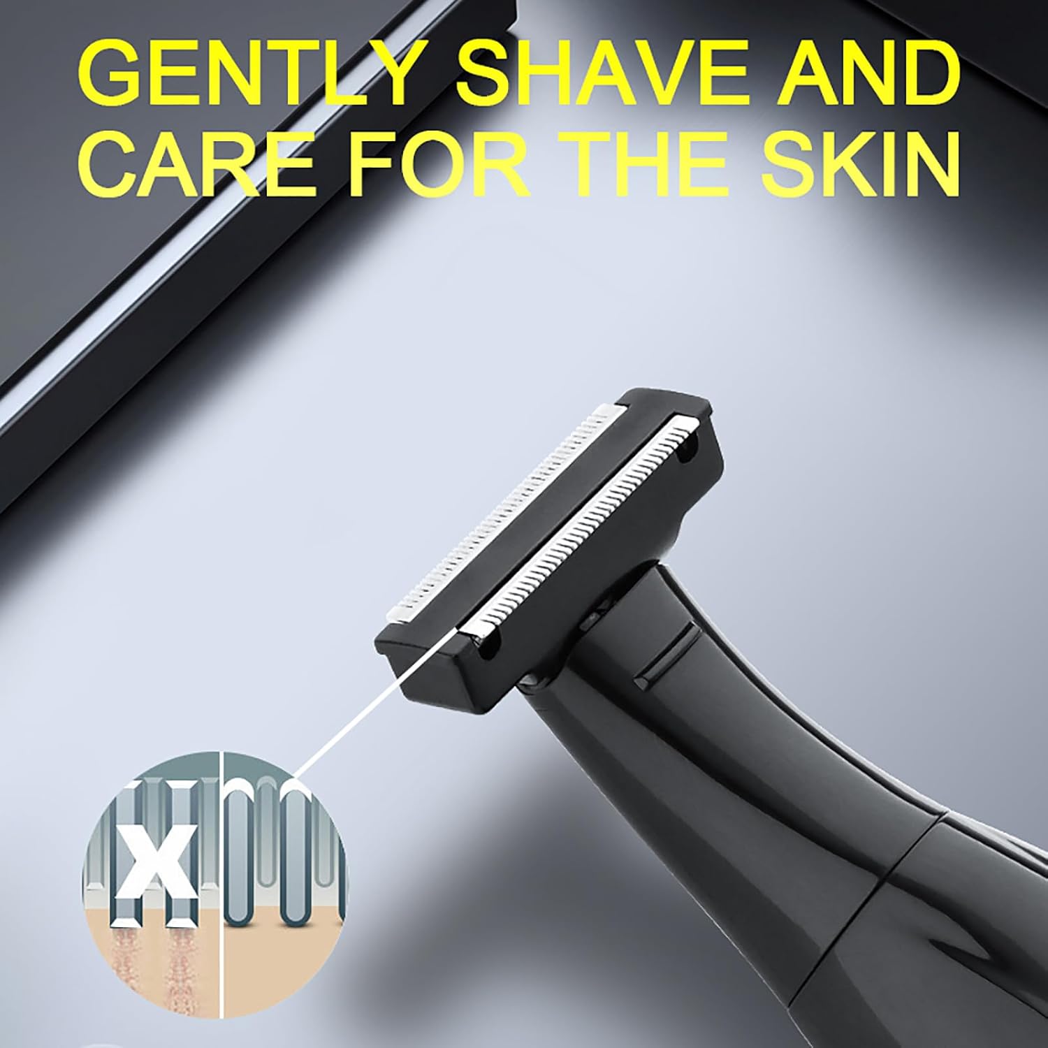Dank der hypoallergenen Edelstahlklinge und der R-förmigen Sicherheitsspitze, die Schnitte, Ziehen und Irritationen verhindert, können Sie sich auch an empfindlichen Stellen sorgenfrei rasieren.
