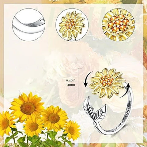 Exquisiter Damenring - Sonnenblumen-Rotationsring-Design, das die Blume dreht, wenn Sie ängstlich sind, bringt Ihnen sofort gute Laune.