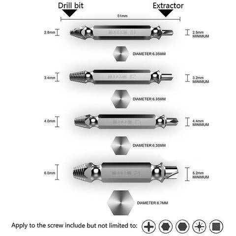 Unsere schadenfreien Schraubendreher kann in Sekundenschnelle problemlos abgestreifte, stecken- und beschädigte Schraube entfernen. Funktioniert in doppelten Seiten perfekt mit einem Bohrer und einer Schraubgröße oder -schrauben.