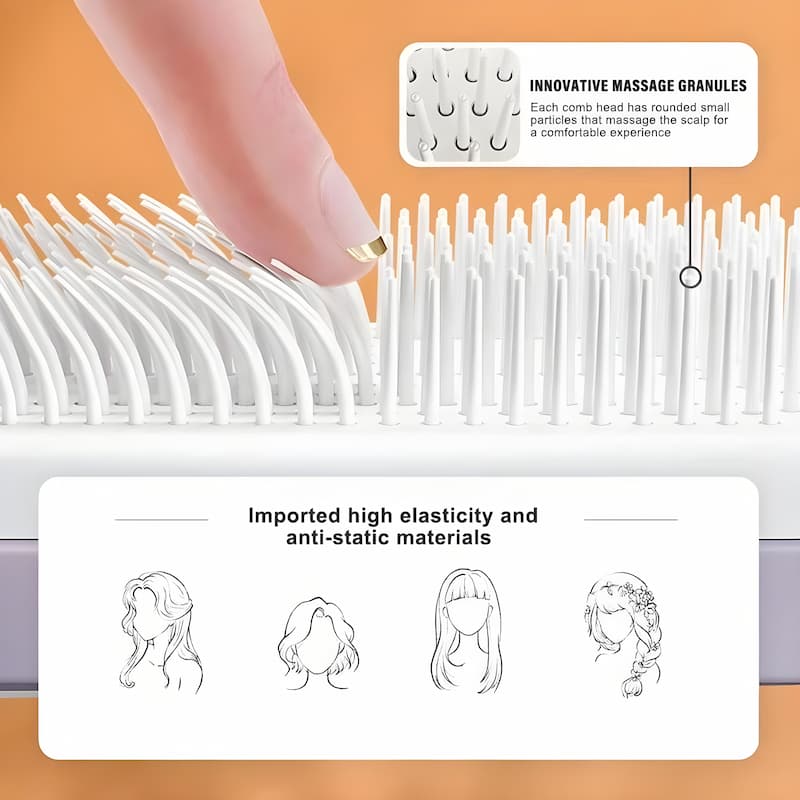 Die weichen, abgerundeten Borsten gleiten sanft durch Knoten und stimulieren die Kopfhaut, um die Durchblutung zu verbessern und gesundes Haarwachstum zu fördern.