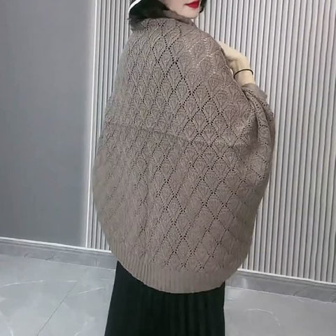 Damen Diamond Hollow Out Knitting Vielseitiger kurzer Schal