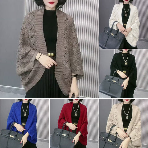 Eigenschaften: Weite Fledermausärmel, Häkelstrick, Atmungsaktiver Mesh-Hohlschnitt, Klassische Volltonfarbe, Gerippter Saum, Hautfreundlicher Stoff, Übergroße Strickjacke.