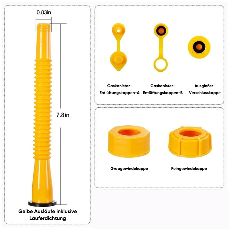 O kit de substituição do botijão de gás apresenta excelente compatibilidade, adequado para a maioria dos botijões de óleo de 1/2/5/10 galões e cabe em aberturas de botijões de óleo de 1,7" a 1,82". O comprimento da mangueira foi estendido para 8,1 polegadas para maior conforto e flexibilidade. -