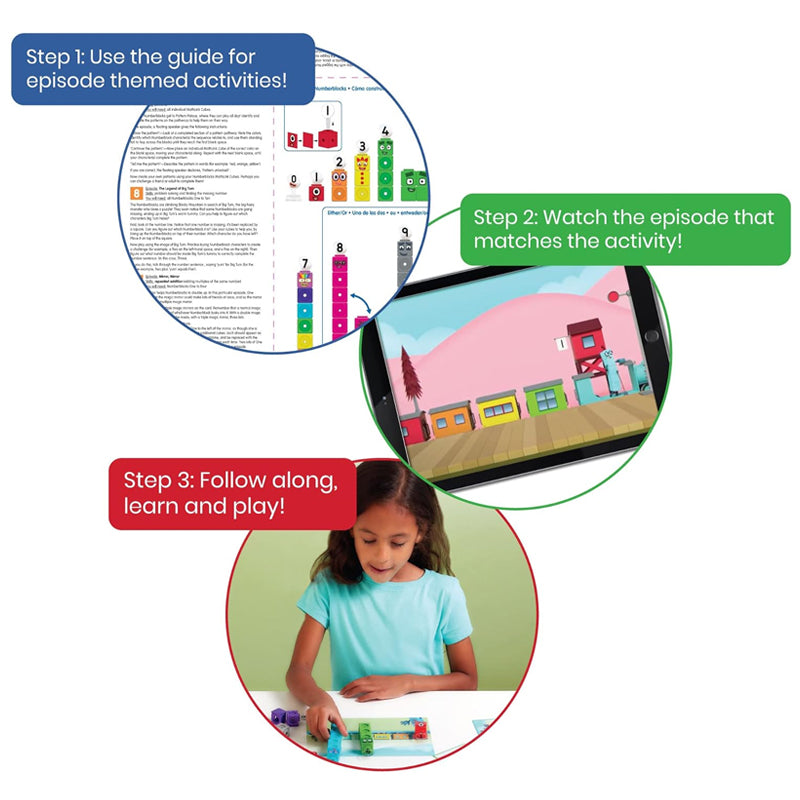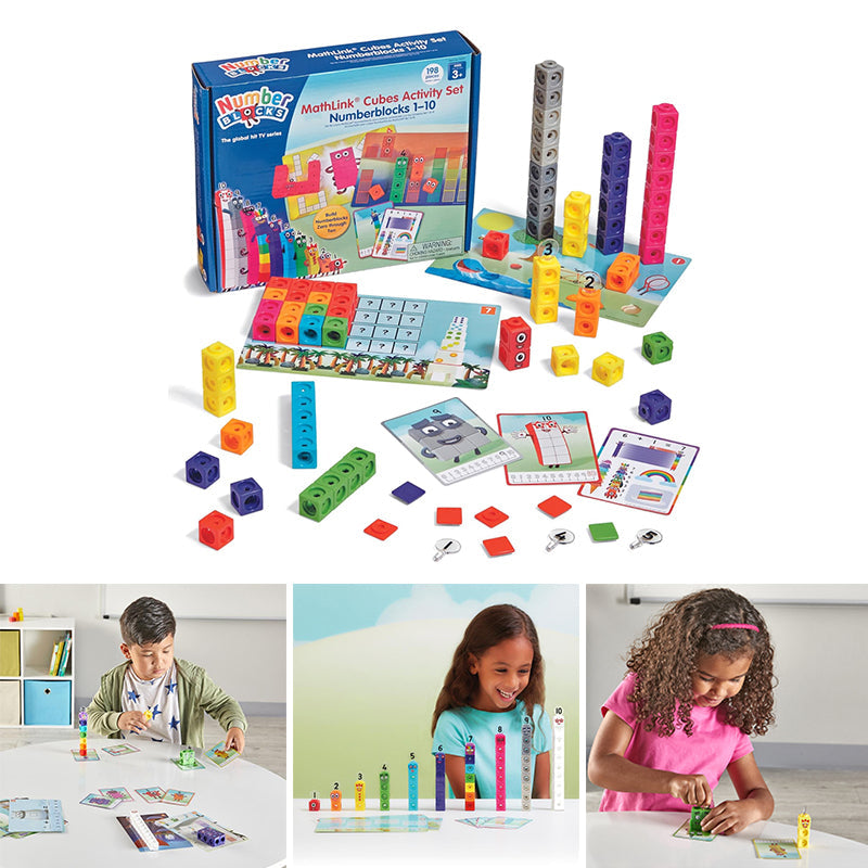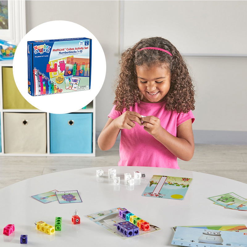 - Comprend 235 cubes MathLink, 20 cubes à double connecteur MathLink, 38 plaques frontales, 10 chiffres, 3 accessoires, 1 feuille d'autocollants, 10 cartes d'activités recto-verso, 10 cartes de personnages et un guide d'activités.