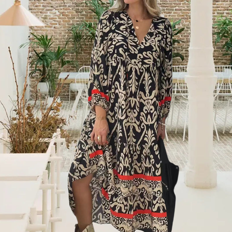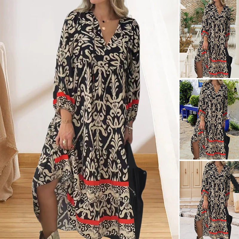 ESTILO ELEGANTE: O decote em V com estampa floral boho mostra seu lindo pescoço e a cintura solta foi projetada para esconder a barriga pequena. Um vestido maxi floral boho clássico muito elegante e bonito. O comprimento do tornozelo destaca a fluidez do vestido longo.