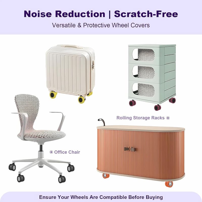 Sie bestehen aus strapazierfähigem, dehnbarem TPR-Silikon und lassen sich ganz einfach ohne Werkzeug anbringen. Sie umschließen die Doppelrollen fest und bieten sicheren Halt.