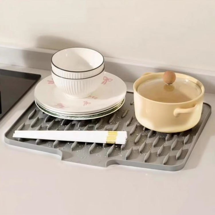 Mit dem DripDock Abtropfpad gehört lästiges Wasser auf der Arbeitsfläche der Vergangenheit an. Dank des intelligenten Rillendesigns fließt überschüssiges Wasser direkt zurück ins Spülbecken – für eine trockene, hygienische und aufgeräumte Küche.