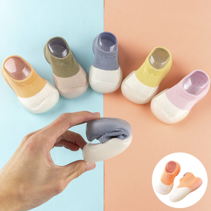 Elastizität und Komfort: Die Silikonsohle der Socken-Schuhe ist so konstruiert, dass sie sich den Bewegungen des Fußes Ihres Babys problemlos anpasst. Der flexible, gestrickte obere Teil bietet den Komfort von Socken kombiniert mit der Stabilität von Schuhen. Einfach anzuziehen und auszuziehen, bleiben diese Schuhe sicher an den Füßen Ihres Kindes und unterstützen ihre ersten Schritte mit Vertrauen.