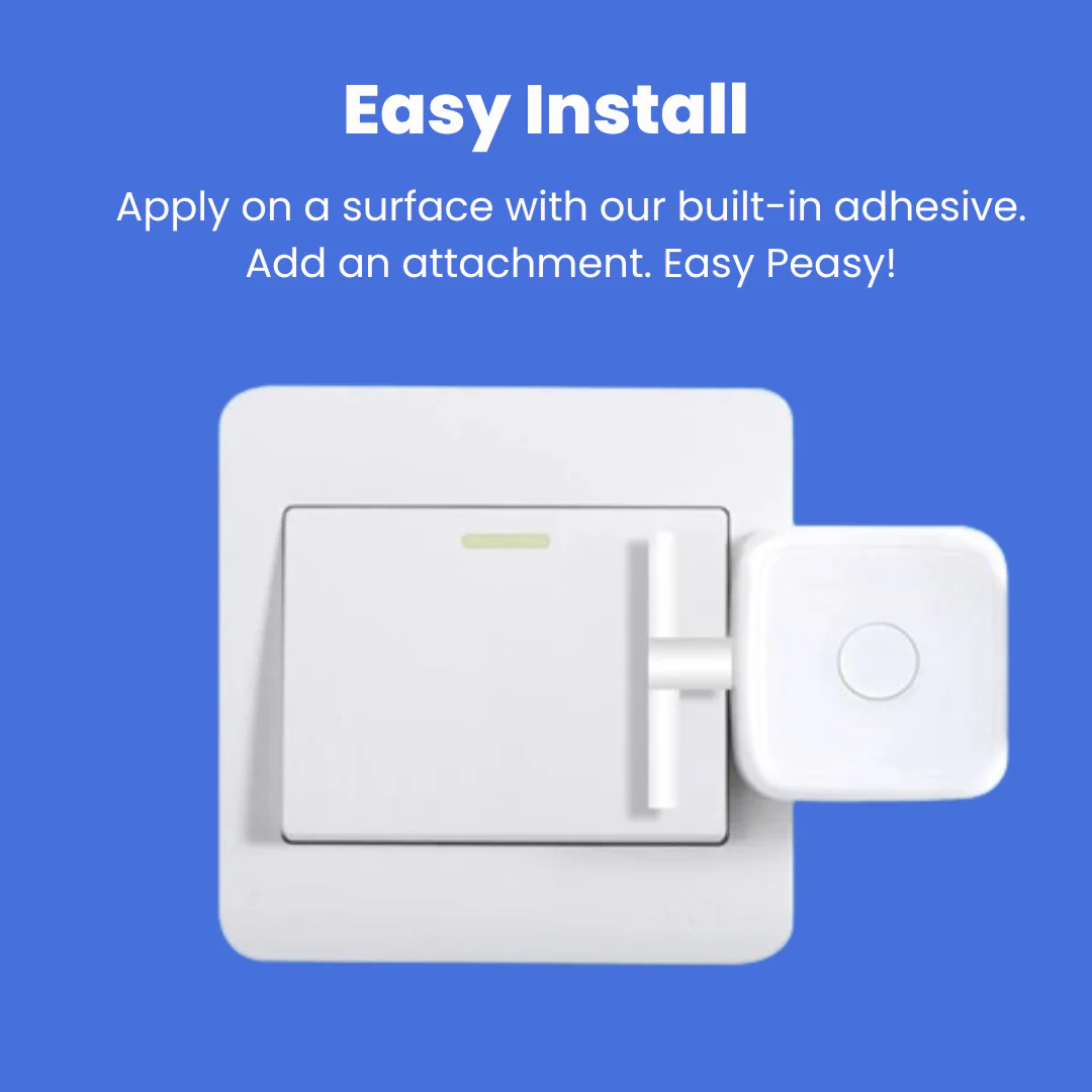 Einfach mit dem mitgelieferten 3M-Klebeband neben einem beliebigen Knopf oder Schalter anbringen, per Bluetooth mit der Smart Life oder Tuya App verbinden – und schon haben Sie ein altmodisches Gerät in ein smartes verwandelt.