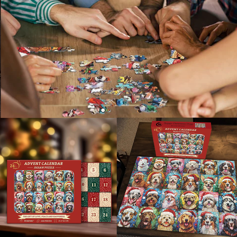Célébrez la saison avec le puzzle du calendrier de l'Avent Happy Christmas Dogs. Avec des images festives et un savoir-faire de haute qualité, il offre une manière joyeuse et interactive de compter à rebours jusqu'à Noël.