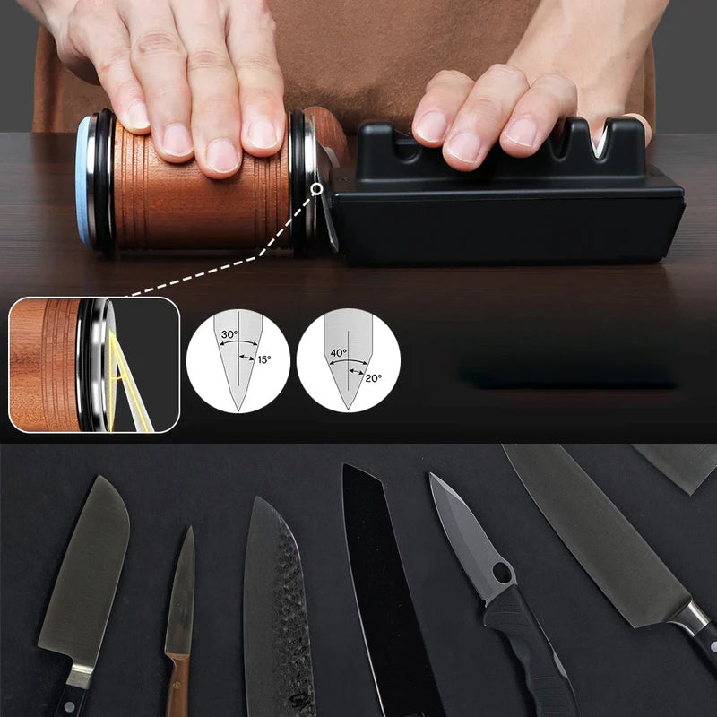 Professioneller Messerschärfer: Die rollende Messerschärfmethode ist revolutionär, indem sie einen magnetischen Messerhalter verwendet, um das Messer zu fixieren, während Sie den Schleifstein hin und her rollen. Erreichen Sie außergewöhnliche Ergebnisse schnell.